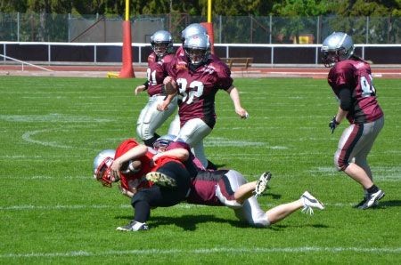 Det bjöds på en sprakande tillställning på söndagsförmiddagen när Uppsala 86ers tog emot Täby Flyers. Redan efter första kick-off returnen hade Uppsala utmärkt field-position och kunde snabbt springa in en touchdown med 2-pt conversion till 8-0. Täby svarade direkt på driven efteråt och det stod 8-8 innan något lag hunnit hämta andan. Det gick verkligen fram och tillbaka, touchdowns på i stort sett varje drive. Uppsala genom springspel och Täby genom en god blandning av springspel på utsidan samt passat som Uppsala hade svårt att stoppa. Det var lysande spel från Flyers quarterback och hans receivers. I halvtid stod det 36-32 till Uppsala och det lättades inte på tempot i andra halvlek. Några olyckliga skador på 86ers nyckelspelare i gjorde det svårt att hänga med Täbys anfallsspel. Uppsala kroknade mot slutet samtidigt som Täby inte släppte på gasen och 86ers orkade inte hela vägen och Flyes vann med 68-48 efter en touchdown på sista spelet i matchen. Men Uppsala kan gå ifrån matchen med huvudet högt. Det är inte varje dag ett lag sätter upp 48 poäng genom endast springspel och kick-off returns och den offensiva linjen förtjänar en eloge. Det var en väldigt rolig match och det tyckte säkert Täby också ! Text: Coach Strandberg