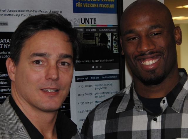 Uppsala 86ers letande med ljus och lykta efter en back-up Quarterback resulterade i att man fann snart 26-årige Jermaine Jenkins från Detroit som firade stora triumfer som Linebacker och Safety i East Michigan State University under flera år. Jermaine, 188 cm och 98 kg, kom till East Michigan 2005 som QB men med sin allroundkapacitet så fick han spela på de flesta positioner. Även som wide receiver. Men sitt sista år på skolan var det främst som LB och FS han spelade. Han är en allroundatlet med bra resultat även i friidrott. Eller vad sägs om 48 sek på 400 m, 2,03 i höjd och 6,40 i längd. - Jermaine är precis den drömspelare vi inte trodde fanns. Vi letade efter en back-up QB till Fabian Söderberg och fick en stjärnspelare till vårt defense och som kan fylla Fabians plats hur bra som helst om han skulle bli skadad, säger coach Per Nilsen som har svårt att dölja sin entusiasm. -Det sparade många gråa hår i lagbygget till säsongsstarten 21 april mot Arlanda Jets. -Vår nya QB-coach Kolya Hardy känner väl till Jermaine från förra året då han coachade honom i Norge. Så vi vet att han kommer fungera bra i Uppsala 86ers. Jermaine framstår som en lugn och trygg kille med båda fötterna på jorden. Att få spela några år i Europa ser han som ett stort äventyr. - Jag älskar football och att få fortsätta efter collegekarriären är en enorm möjlighet att bredda sina vyer, säger Jermaine som varit i Uppsala på en blixtvisit för att skriva kontrakt och träffa laget. Den 2 mars kommer Jermaine tillbaka till Sverige för att ta 86ers till slutspelet i Superserien. Bilden: Jermaine träffade 86ers-legenden Theo Blanco under sitt besök i Uppsala.//Foto: Martin Söderberg. Här är några bra länkar för mer info om Jermaine: http://www.emueagles.com/roster.aspx?rp_id=1929&path=football http://www.youtube.com/watch?v=_AvGkRwcz0k http://www.youtube.com/watch?v=iQzxyCgzUAA