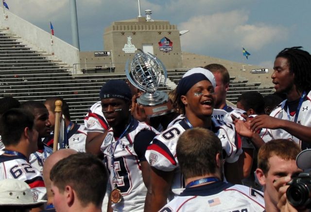 Det blev som väntat USA som blev världsmästare i amerikansk fotboll när det första JVM:et någonsin avslutades på söndagskvällen. USA slog Kanada med 41-3 i finalen inför närmare 16 000 åskådare på anrika Fawcett Stadium i Canton, Ohio, USA. Se hela matchen HÄR: mms://qstream-wm.qbrick.com/04424/86/20090705jwcfinal.wmv (ca 29 minuter filmad av Martin Söderberg) Redan i den första minuten gjorde USA sin första TD och finalen blev lite av spel mot ett mål. Men Kanade blev i alla fall genom sitt fieldgoal i den första kvarten det enda lag som lyckade spräcka nollan mot USA. Det var första gången USA tagit ut ett riktigt landslag till en internationell turnering. 50 stater hade nominerat 10 spelare var och från dessa togs 45 ut till den slutliga truppen. Det var ingen tvekan om att USA hade för avsikt att visa att i amerikansk fotboll är man bäst i världen. Inget av lagen USA mötte, Frankrike, Mexico eller Kanada gav hemmahjältarna någon riktig match och det kommer ta många år innan resten av världen nått upp i USA:s standard. Men amerikansk fotboll har genom detta JVM fått ett ordentligt fotfäste internationellt och IFAF, det internationella förbundet, valde i helgen in sin 57:e medlemsstat, Venezuela.