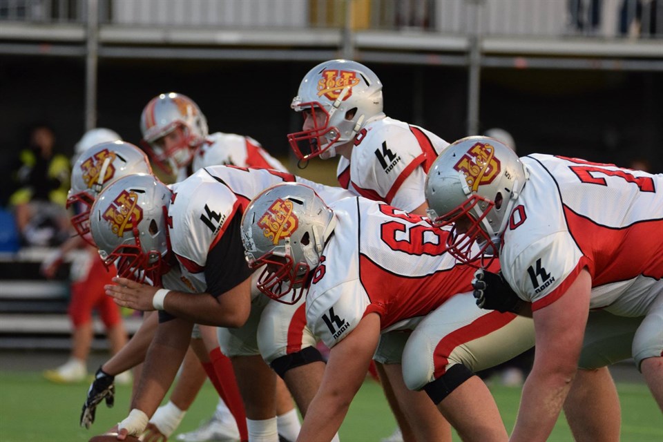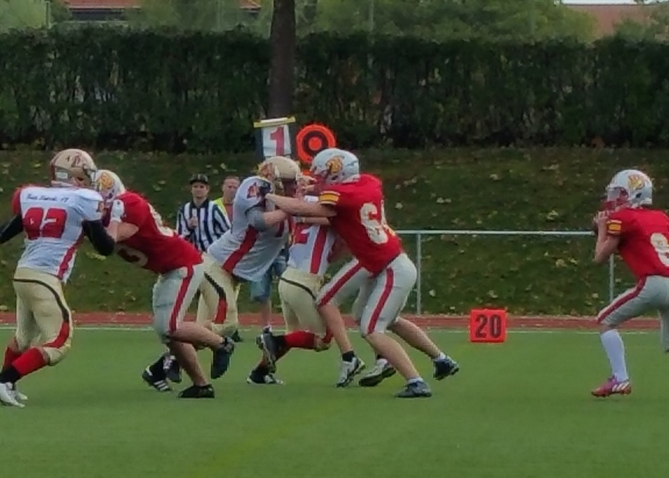 Uppsala 86ers U19 var ordentligt laddade inför seriefinalen mot Tyresö Royal Crowns på Tyresövallen på söndagskvällen. Tyresö har imponerat hela säsongen och såg på papperet ut att vara lite av favoriter i matchen. Men Uppsala plockade fram ett tufft defense och ett riktigt vasst offense och gav inte Tyresö någon riktigt chans. När Uppsala ledde med 14-7 klev TRC:s duktige QB av matchen och det gjorde naturligtvis inte saken lättare för hemmalaget. 27 - 7 stod det i halvtid och när matchen var över var ställningen 45 - 7 till Uppsala. Vårt U19 lag har fortfarande inte förlorat en match i år. Nästa match för U19 är SM-semifinal hemma på Österängen den 1 oktober. Vilket lag det blir är osäkert, men det står troligen mellan Karlskoga och Örebro. Vinnaren av den södra serien blir Kristianstad som nu får ta sig an Tyresö i semin nere i Kristianstad. Så om Tyresö kan resa sig igen efter förlusten mot Uppsala så kanske de kan ges en chans till revansch vid en eventuellt SM-final lagen emellan den 9 oktober i Uppsala. Även Uppsalas U15 står obesegrade efter en stor seger mot Västerås i helgen. 44 - 0 vann de med på bortaplan. Foto: Oscar Engvall