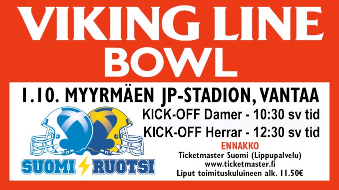 På lördag spelas den årliga finnkampen. Damlandslaget och herrlandslaget åker till Finland för att ta revansch för förra årets förluster på Stockholms Stadion. Damerna har inte vunnit någon match sedan den första landskampen 2008 mot de duktiga finskorna som tog EM-guld förra året. Det vore en överraskning om de vann nu på lördag men kanske kan de ändå närma sig finskorna spelmässigt. Herrarna har sedan 1992 spelar 20 finnkamper. Och det står 10 - 10 landslagen emellan. Förra året var Sverige väldigt nära en seger men fick ge sig till sist. Det märkliga är att Sverige vann såväl 2012 som 2014 i Finland men förlorade såväl 2013 som 2015 i Sverige. I det svenska laget spelar Johan Markström och Nico Peterson från Uppsala medan Gustav Kierebinski och Fabian Söderberg tyvärr tvingats lämna återbud p g a skador. Matchen kommer streamas LIVE via den här länken. Eftersom herrarna startar redan 12:30 blir det en bra förmatch till 86ers U19 SM-semifinal mot Karlskoga Wolves som startar 17:00 på Österängen. Du kan läsa mer om matchen via den här länken. Vill du se förra årets matcher i repris hittar du dem här: Dammatchen, Herrmatchen. Här är rostern för herrlaget: HC. Andreas Ehrenreich 1 Peterson Nicholas DB 1992 186 88 Wasa Royals (FIN) 2 Juhlin Philip QB 1991 185 90 Carlstad Crusaders 3 Knutsson Emil RB 1994 176 97 Tyresö Royal Crowns 4 Jobe Amat DB 1988 186 85 Tyresö Royal Crowns 5 Hermodsson Anders QB 1989 197 115 Lazio Marines (ITA) 6 Persson Ludvig QB 1996 180 75 STU Northside Bulls 7 Lindström Linus DB 1993 182 83 Limhamn Griffins 8 James William DB 1991 186 94 Dresden Monarchs 9 John Denny WR 1992 182 85 Wasa Royals (FIN) 10 Nguso Josef WR 1993 175 79 Carlstad Crusaders 13 Simon Hampus K 1990 195 90 Tyresö Royal Crowns 21 Hudritsch Markus RB 1996 190 105 Örebro Black Knights 24 Persson Markus DB 1992 187 93 Carlstad Crusaders 25 Joseph Alex WR 1993 175 79 Tyresö Royal Crowns 30 Göransson Timmy RB 1992 176 96 Limhamn Griffins 33 Piensoho Alexander LB 1995 185 100 STU Northside Bulls 39 Persson Marcus LB 1991 188 100 Limhamn Griffins 40 Jönsson Filip LB 1990 179 97 Örebro Black Knights 44 Murphy Eric LB 1992 187 97 Örebro Black Knights 50 Lindgren John OL 1995 187 114 STU Northside Bulls 56 Nilsson Sebastian OL 1992 190 125 Örebro Black Knights 65 Malander Maximilian OL 1992 197 130 Tyresö Royal Crowns 66 Johansson Niklas OL 1991 190 130 Carlstad Crusaders 69 Lavin Lucas OL 1996 193 135 Örebro Black Knights 70 Blomgren Eric OL 1993 192 130 Wasa Royals (FIN) 77 Schöön Sebastian OL 1992 193 120 Limhamn Griffins 80 Sander Michael WR 1988 187 90 STU Northside Bulls 81 Holgård André WR 1989 178 80 Carlstad Crusaders 82 Jacobsen Tomas WR 1992 178 80 Örebro Black Knights 84 Dahre Jakob WR 1990 198 100 Carlstad Crusaders 86 Stål Johan WR 1984 178 88 Örebro Black Knights 90 Vasic Georgije DL 1996 194 110 Stockholm Mean Machines 91 Persson-Ghylfe Niklas DL 1991 192 105 Örebro Black Knights 92 Lannefors John DL 1989 190 106 STU Northside Bulls 94 Sandberg Simon DL 1996 193 117 Carlstad Crusaders 95 Markström Johan DL 1993 188 110 Uppsala 86ers 99 Hagman Viktor DL 1988 193 118 Tyresö Royal Crowns