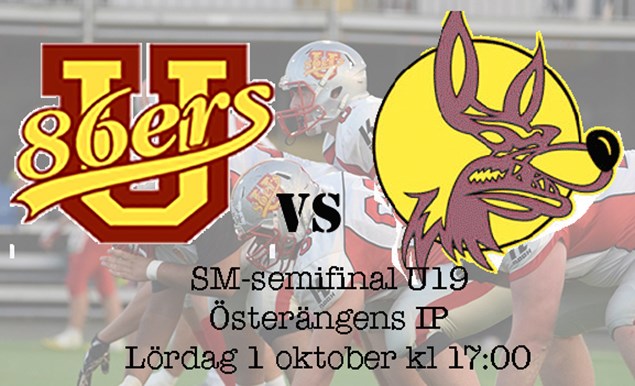 Uppsalas U19 har imponerat stort den här säsongen. Hittills obesegrade i såväl vårens Easy Football turnering som under seriespelets grundserie. På lördag kl 17 spelar de semifinal mot Karlskoga Wolves som kom tvåa i den södra U19 serien. Vinnaren spelar SM-final på Österängen den 9 september. Har du inte möjlighet att komma ner till Österängen så finns det en enkel webbsändning via den här länken. Och här är lagens rosters. - Karlskoga har en stor och tuff linje, såväl på offense som defense, säger headcoach Acke Grünewald som så framgångsrikt tagit laget till semifinalen. - Viktigt är att tidigt sätta oss i respekt med vårt defense. En av Uppsalas styrkor under säsongen har varit deras stora trupp och möjlighet att ha ett helt separerat defense respektive offense. Det är 36 licensierade U19 spelare och med några förstärkningar från U17 skulle truppen kunna bestå av fler än 40 spelare. Men med några skadade spelare så stannar laguppställningen på lördagen kring 35 spelare. - Det blir en tuff match, en fysisk match. Karlskoga har haft en bra ungdomsverksamhet i många år och de är absolut inriktade på att sig till finalen, säger Martin Söderberg, ordförande i Uppsala 86ers som hoppas att det kommer många föräldrar, medlemmar, anhöriga och övrigt fotbollsintresserade och hejar på hemmalaget. - Det är en fantastisk möjlighet för 86ers att ha vårt U19-lag i SM-final. Det har vi aldrig haft förut. Och med herrarna som SM-silvermedaljörer, SM-guld till Flaggfotbollslaget, ett obesegrat U15 lag, ett bra U17 lag och en stor U11/13 trupp så måste vi konstatera att vi skött oss rätt bra som förening den här säsongen. - Vi hoppas på en bra match på lördag kväll där våra juniorer tar sig till SM-finalen nästa helg, avslutar Martin Söderberg.