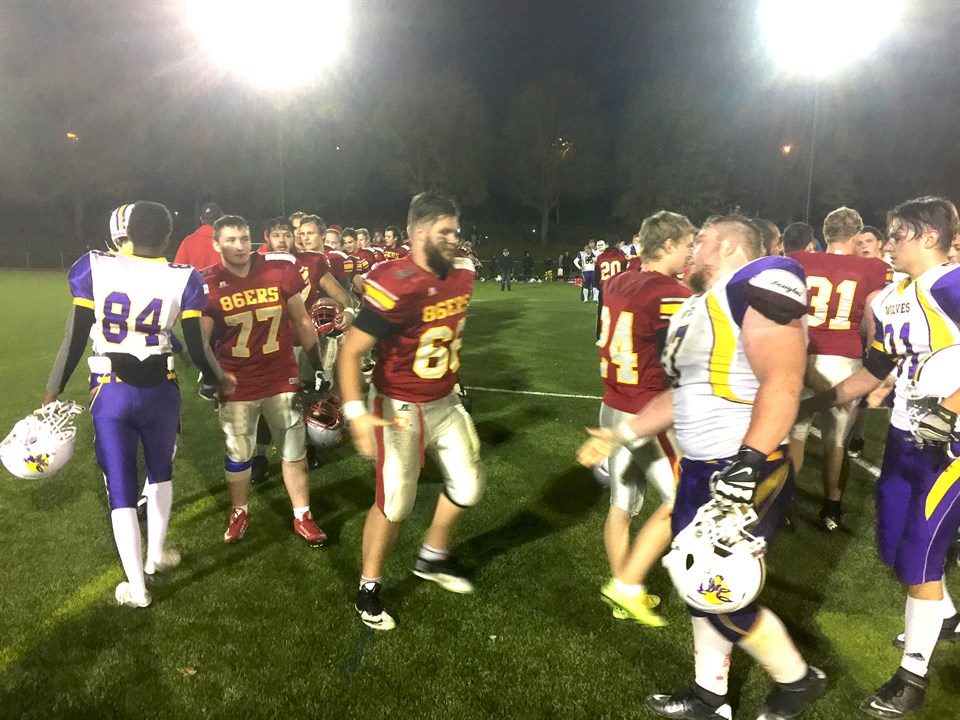 Det blev en klassisk SM-semifinal på Österängen på lördagkvällen. Karlskoga Wolves var precis så tuffa på linjen som förhandsinformationen varnat om. Men trots att Uppsalas offense hade stora svårigheter att ta sig framåt så vann 86ers semifinalen med 14 - 7 efter att den andra halvleken blev poänglös. - Skönt att det gick vägen, nu är minst två SM-guld och ett silver säkrade till Uppsala, konstaterade headcoach Acke Grünewald, ordentligt tagen efter matchen. Vad Acke hänvisade till var Uppsala Snake Heads SM-guld i Universitetsligan, Flaggfotbollslagets SM-guld och Herrseniorernas SM-silver tidigare i somras. Uppsala startade bra och gjorde matchens första TD i första quartern och det såg ut att blir ytterligare en TD som dock blev bortdömd. Sedan kom Wolves tillbaka och utjämnade innan Uppsala strax innan halvtid återigen fick in bollen för halvtidsresultatet 14-7. Den andra halvleken präglades av tuffa försvar från båda lagen där Uppsala fumblade alldeles för ofta i offense och Wolves kastade en rad interceptions. Inget lag lyckades göra poäng i den andra halvleken och det gick en djup suck av lättnad genom den 300 hövdade publiken när klockan slutligen runnit ut. Uppsalas poänggörare: Axel Pontén, 6 Ludvig Andersson, 6 Alexander Segerfeldt, 2 Karlskogas poänggörare: Arvid Brunosson, 7 SM-finalen spelas söndag den 9 okt kl 14:00 på Österängen mot Kristianstad som tidigare under lördagen betvingade Tyresö med 31-19 nere i Kristianstad. Här kan du se del 1 av 2 från SM-semifinalen Och här är del 2.