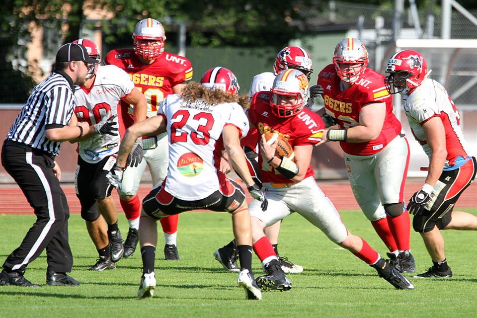 Det blev en enkel seger mot Västerås Roedeers. Kanske lättare än väntat med tanke på hur bra Roedeers QB, James Boyd, är. 46-7 (37-0) blev segerresultatet efter att 86ers defense snöpligt släppte in en TD i den andra halvleken som blev väldigt kort, ca 25 minuter, pga klockan inte stoppades. En ny regel tillämpas nämligen i år som reglerar att om ett av lagen leder med 35 poäng eller mer så ska klockan rulla utom vid skadeavbrott. Första driven i matchen var Västerås. Och det var en liten väckarklocka för Uppsala. Med varierade passningar tog sig James Boyd ända fram till Uppsala 45 yardslinje innan de fick punta. Och då hade redan halva första quartern gått. Från egen 19 yardslinje startade sedan Uppsala anfall och man började med en passning till Jamal Hussein för tre yards för att sedan ta fram sitt starka springspel med Jonathan Wikström som genast tog sig fram 38 yards. En fin passning från Jeff Welsh efter bara två minuters spel fram till Strahinja Stepovic som sprang in sin första TD för dagen släckte Västeråsarnas lilla hopp direkt. I Uppsalas första sex drivar så gjorde laget touchdown! Coach Mitchell varierade spelet med en blandning av springspel och passningspel och quarterback Jeff Welsh passade slutligen för hela 286 yards. Jonathan Wikström producerade 115 yards på marken medan widereiver Strahinja Stepovic och Jamal Hussein båda tog emot passningar för över 100 yards, 129 respektive 107. Efter halvtid gick tiden väldigt fort och Västerås kunde få in en tröst TD på en fin passning av James Boyd till Joshua Smith. I Uppsala gjorde Strahinja Stepovic en ny fin match och med fem TD:s slog han eget poängrekord. Roligt var också att Jamal Hussein kom in i matchen ordentligt och hans touchdown var riktigt läcker där han sprintade ifrån sin försvarare och sprang in sin TD från 69 yards. Defense visade på nytt styrka och det var flera bra prestationer i matchen. Västerås kom med en väldigt tunn trupp men bröderna Mattias och Sebastian Gauthier fanns med i nästan alla spel. Riktigt snabb var även amerikanen Joshua Smith och det var ingen som hann i fatt honom när han gjorde Västerås touchdown. Nästa match för 86ers är på söndag den 31 maj. Då sätts laget verkligen på prov för då kommer regerande mästarna Carlstad Crusaders till Studenternas. En snöplig förlust i den senaste matchen för fyra veckor sedan i Karlstad ska omvandlas till vinst är det meningen. Men Crusaders har gått från klarhet til klarhet de senaste matcherna och är i vanlig ordning obesegrade. Kanske kan Uppsala ändra på det. Statistiken från matchen mot Västerås. Se matchen mot Västerås i repris. Slutresultat: Uppsala 86ers – Västerås Roedeers, 46-7 (37-0) Publik: 498 Poänggörare: Uppsala: Strahinja Stepovic: 32 Jamal Hussein: 6 Jeff Welsh: 6 Cameron Grad: 2 (Safety) Västerås: Joshua Smith: 6 Mattias Gauthier: 1