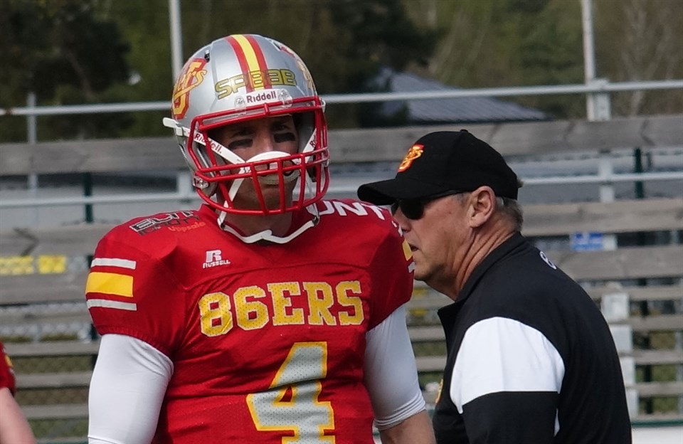 Det var en tuff helg för Uppsala 86ers när de i söndags förlorade den täta matchen mot alltid lika starka Carlstad Crusaders med 14-7. 86ers vann i stort sett all jämförande statistik men förlorade ändå matchen när man stod endast 1 yard ifrån Crusaders mållinje och tiden runnit ut. 86ers slog Crusaders med 329 vunna yards mot 194 och hade även fler första försök än Crusaders. Men ett står i alla fall klart och det är att Uppsala 86ers är ett lag att räkna med i årets Superserie. Bara en mottagning ifrån en riktig skräll. Speciellt som matchen dessutom spelades på Tingvalla där Crusaders inte förlorat sedan 2008. Det var en förlust som var svår att smälta för Uppsalaspelarna. Standigt bättre Men positivt är att ingen allvarligare skada rapporterades från matchen och samma spelare kan ta sig an Stockholm Mean Machines på Zinkensdamm nu på lördag. Misstagen från i söndags kommer vara åtgärdade och laget blir under nya Headcoachen Mike Mitchells ledning ständigt bättre. - Vår målsättning är att vi ska utvecklas till det bättre vid varje träning. Och det är alla spelare införstådda med, säger Coach Mitchell. - Men vi noterade att konditionen kan förbättras så fokus i veckan kommer ligga mycket på att förbättra uthålligheten och det ska fortsätta så under säsongen. - Special teams kommer också få mycket uppmärksamhet då vi hade uppenbara problem med att hantera puntar i matchen mot Crusaders. Ohotade förra året Uppsala har de senast två åren inte haft några svårigheter med att slå Mean Machines. Men förra säsongen började matchen väldigt illa för Uppsala och det såg länge ut som om Mean Machines skulle kunna skrälla. Men i den andra halvleken fick Uppsala ordning på spelet och segern var odiskutabel. - Jag har hört att laget förra säsongen i flera matcher kom igång dåligt i den första quartern. Det är något vi mentalt jobbat hårt med under försäsongen. Det finns ingen anledning att ge motståndarna ett försprång, säger Coach Mitchell. I helgen startar även Uppsala 86ers farmarlag, Gefle Red Devils, sin säsong. Uppsala avvarar fem av sina spelare för spel i Gefles match mot Göteborg på lördag. Matchen startar 15:00 lördag 9 maj på Zinkensdamms IP. Preliminära starters för Uppsala 86ers: Offense: OL Daniel Söderberg OL Linus Larsson OL Rikard Hellgren OL Rasmus Karlsson OL Markus Karlsson RB Johannes Nilsson RB Jonathan Wikström WR Strahinja Stepovic WR Jamal Hussein TE Robin Lind QB Jeff Welsh Defense: DL Fredrik Zetterlund DL Johan Markström DL Henrik Green DL Filip Palmqvist LB Andreas Thornadtsson LB Otto Möller LB Richard Liljestrand DB Divin Baleka DB Fabian Söderberg DB Cristoffer Dessezar DB Erik Karpmyr Specialists: K.O. Mattias Lundkvist PAT/FG Mattias Lundkvist Punter Joel Thungren K.O. return Strahinja Stepovic, Cristoffer Dessezar Punt return Cristoffer Dessezar, Strahinja Stepovic Spelar troligen(Probable): Robert Wirsén (TE) Joseph Sanoe (DL) Spelar troligen inte (Questionable): Pouya Faramarzi (DB) Victor Hillerström (DB) Spelar ej pga skada (out): Rickard Ovsiannikov (OL) Paul Norström (LB) Christoffer Nelin (LB) Nicko Peterson (DB) Spelar ej pga särskilda skäl (out): Cameron Grad (LB), Examen i USA Rasmus Andersson (OL), Arbete Spelar för farmarlaget Gefle Red Devils (out): Felix Makaraowski (WR) Hampus Wettersten (WR) Erik Torsell (DB) Fredrik Heiding (LB) Andreas Lundström (RB) Bilden: Jeff Welsh med HC Mitchell i bakgrunden.//Foto: Martin Söderberg