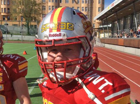 Siffrorna skrevs visserligen till övertygande 39-0 för Uppsala 86ers mot Stockholm Mean Machines på lördagseftermiddagen. Men Mean Machines hade sina stunder då de visade prov på bra försvarsspel och springspel. Det är uppenbart att Mean Machines är inne i en generationsväxling. Unga U19 spelare blandas med ärrade veteraner över 40 år och det räckte inte mot ett Uppsala som på alla sätt ville ta revansch för förra helgens snöpliga förlust mot Carlstad Crusders. - Lite orolig är man för att grabbarna ska ta för lätt på uppgiften, sa 86ers sportchef Per Nilsen innan matchen. Men han hade ingen anledning att oroa sig när matchen väl kom igång. Redan i första driven på ca 80 yards kunde quarterback Jeff Welsh själv springa in en TD från knappt en yard och när sedan Mean Machines fumblade direkt på kick-off returen och Jonathan Wikström efter flera bra springspel gjorde 13-0 så hade Uppsala visat var skåpet skulle stå. Mean Machines nästa drive stoppades genom en interception av Divin Baleka men den här gången fick Mean Machines stopp på Uppsala. Den andra quartern startade med att Mean Machines missade en puntfake och Uppsala fick en väldigt bra fieldposition inne på Mean Machines planhalva. Jonathan Wahlgren tog emot Jeff Welsh passning och tog sig ända upp till Mean Machines 8-yards linje där Jonathan Wikström sedan sprang in sin andra TD för kvällen och med en lyckad spark av Mattias Lundqvist så var ställningen 20-0 med 8:29 kvar av den första halvleken. Punt igen Inte heller nästa drive blev lyckad av Mean Machines som återigen fick punta bollen. Bra springspel av bland annat Johannes Nilsson satte Uppsala i ett bra läge som utnyttjades genom en tuff passning till Strahinja Stepovic som mirakulöst tog emot bollen och lyckades hålla fötterna innanför målområdet. 26-0 stod sig halvleken ut. Den andra halvleken inleddes med en drive av Mean Machines som dock avslutades med att de på nytt tvingades punta bollen. Jonathan Wikström sprang sedan en massa yards i ett fint anfall som trots allt stoppades genom suveränt försvarsspel av Mean Machines på deras egen ½ yards linje. Dagens bästa prestation av Stockholmarna. Men vidare långt kom sedan inte Mean Machines som på nytt fick punta. Men de höll i alla fall Uppsala på 0 poäng i den tredje quartern. I den fjärde quartern satte Strahinja Stepovic Uppsala i ett bra läge på Mean Machines 3-yardslinje efter en fin catch och det utnyttjades av Jonathan Wikström som gjorde sin tredje TD med en snygg löpning. Den här gången var det Strahinja som sparkade in extrapoängen till 33-0 med 10:36 kvar. Tung löpning av Nilsson Återigen kom inte Mean Machines genom Uppsalas starka försvar och fick punta. I Uppsalas nästa drive sprang Johannes Nilsson tungt upp i mitten och 86ers lyckades även med att gå för det på fjärde som tog dem ända till Mean Machines 29-yards linje. Därifrån sprang Jared Stegman, som nu spelade QB, själv ända till Mean Machines 4-yardslinje. En pass från Jared till Daniel Lindfors resulterade i 39-0 med 3:30 kvar. Eftersom det nu tillämpas s.k. barmhärtighetsregler (Mercyrule) när ett lag leder med mer än 35 poäng så rullade klockan och matchen slutade utan att något mer hände. Uppsala tog tillfället i akt och lät alla ombytta spelare få ordentligt med speltid. - Det är viktigt att alla får spela. Det utvecklar spelarna mer när de får lite matchvana, menade headcoach Mike Mitchell efter matchen. - Jag tycker både offense och defense gjorde en bra match, sa Mike till spelarna som även uppmanade dem att fortsatta hålla flåset uppe inför den viktiga matchen nästa söndag på Studenternas mot förra årets finallag Örebro Black Knights. Se hela intervjun med Coach Mitchell HÄR. Då blir säkerligen motståndet tuffare än den här helgen. Och det ser ut som om de spelare som vilade den här veckan kommer kunna komma tillbaka till dess. Nicko Peterson, Victor Hillerström och Robert Wirsén är några av de nyckelspelare som kommer vara tillbaka efter sjukdomar och skador. Cameron Grad, 86ers linebacker från USA som förra veckan gjorde succé mot Crusaders, deltog inte i matchen mot Stockholm. - Cameron fick ledigt fyra dagar för att åka hem till sin examen, berättar Sportchef Per Nilsson. - Men han är tillbaka i god tid för att ladda inför matchen mot Örebro. Om man ska summera Uppsalas prestationer efter matchen så måste en eloge gå till defense. Att hålla Mean Machines på noll poäng och egentligen utan någon chans att scora under hela matchen, är starkt. Självklart får även offense godkänt även om man tappade ett antal bollar och heller inte lyckades överlista Mean Machines vid ett tillfälle när de bara hade någon yard kvar. Men att ge en vettig analys av individuella prestationer när laget är såpass överlägset är svårt. Att Jonathan Wikströms utsågs till Uppsalas MVP var dock ett utmärkt val. Poänggörare Uppsala 86ers: Jonathan Wikström, 18 poäng Strahinja Stepovic, 7 poäng Jeff Welsh, 6 poäng Daniel Lindfors, 6 poäng Mattias Lundkvist, 2 poäng Statistik från matchen Bilden: 18 poäng av Jonathan Wikström.//Foto: Martin Söderberg